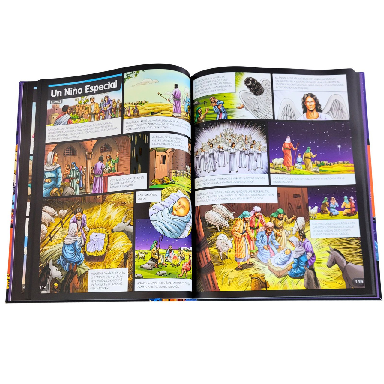 Este volumen no es solo un libro ilustrado; es una puerta de entrada para que los niños se enamoren de la Biblia, descubriendo sus historias a través de un formato que realmente conecta con ellos: la novela gráfica. Con viñetas llenas de movimiento, colores intensos y narraciones ágiles, cada historia cobra vida mostrando el poder y la fidelidad de Dios de una manera inolvidable.