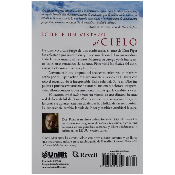 Noventa minutos después del accidente, mientras un ministro oraba por él, Piper volvió milagrosamente a la vida en la tierra con solo el recuerdo de la inexpresable dicha celestial. Su fe en Dios fue puesta a prueba severamente durante su incierta y dolorosa recuperación. Ahora comparte con usted esta historia que le cambió la vida.