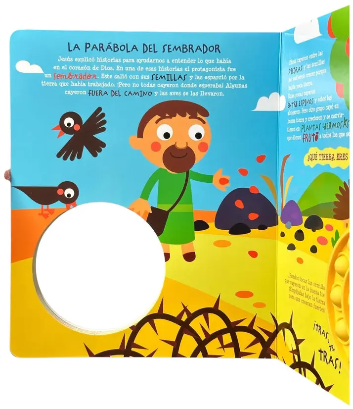 Del lugar donde Dios nos puso y desde donde nos quiere enseñar lo que hay en su corazón. Descubre con este libro algunas de las historias fascinantes de la Biblia que incluyen este elemento mientras los más pequeños juegan las burbujas Pop-It.