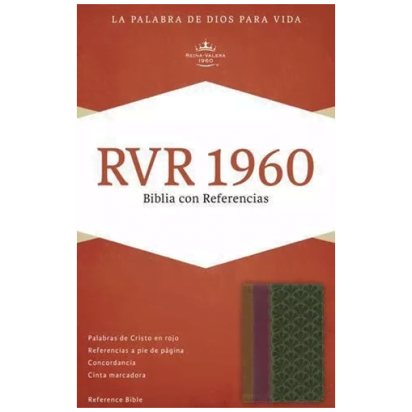 Biblia Con Referencias RVR1960, Imitación Piel, Color Chocolate/Ciruela/Verde jadeAutor: Holman Bible PublishersISBN: 9781433691225Completa con mas material adicional del que usted esperaría tener en una sola Biblia. La Biblia RVR 1960 con Referencias incluye ayudas de estudio que sólo se encuentran en ediciones mas costosas.Incluye: Palabras de Cristo en rojoPlan de salvaciónPágina de presentación y registro familiarSíntesis de cada libroReferencias a pie de páginaCómo leer toda la BibliaPanorama históricoApariciones luego de la resurrecciónQué leer cuandoJesus y los diez mandamientosHistoria de los apóstolesConcordancia de 64 páginasArmonía de la vida de CristoMapas a todo colorCinta marcadoraCubierta: Tapa DuraDimensiones: 22 x 14 cms Aprox.