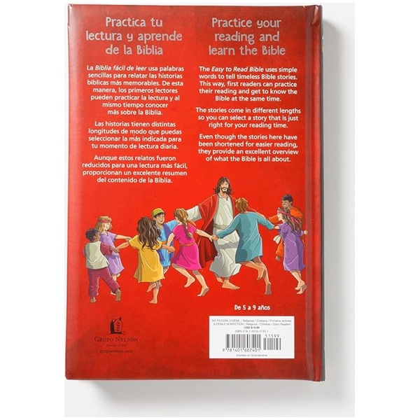 La Biblia fácil de leer– bilingüe utiliza palabras sencillas para contar las historias bíblicas más memorables. Así, los primeros lectores pueden practicar su lectura y conocer la Biblia al mismo tiempo.