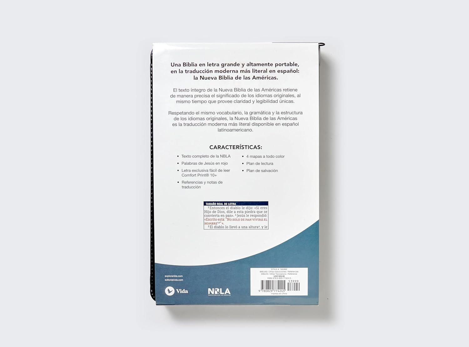 Una Biblia en letra grande y altamente portable, en la traducción moderna más literal en español latinoamericano: la Nueva Biblia de las Américas.