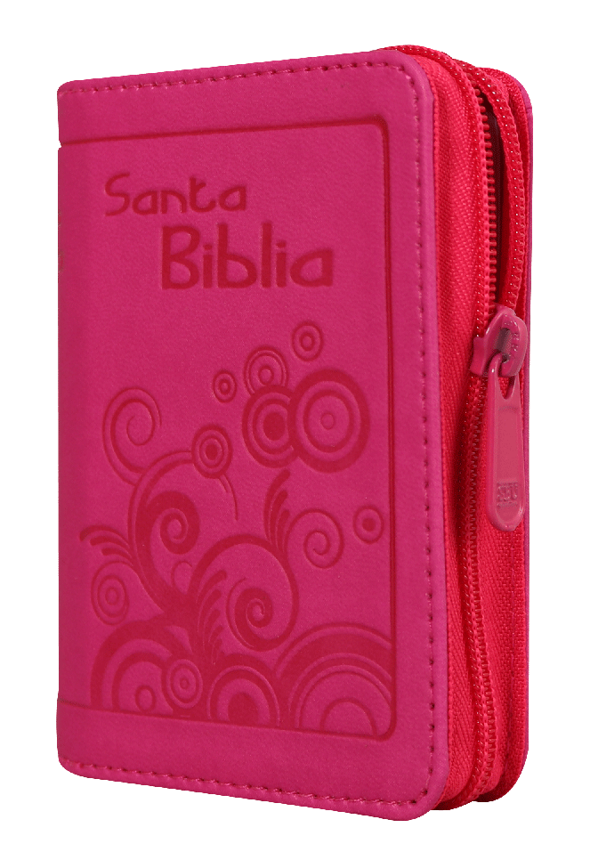 La Biblia Reina Valera 60 tamaño minibolsillo será tu compañía en todo lugar, su cubierta moderna y juvenil creada en un material flexible con cremallera que le permite ser resistente al agua. En el interior de sus páginas encontraras la Biblia con una tipografía que a pesar de su tamaño (Pequeño) permite una lectura agradable y amena. El color rosado y su fino diseño grabado la hace un producto muy femenino y elegante.