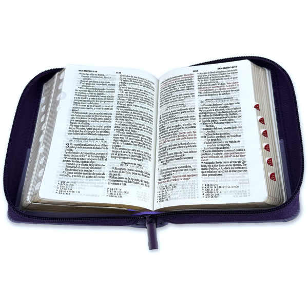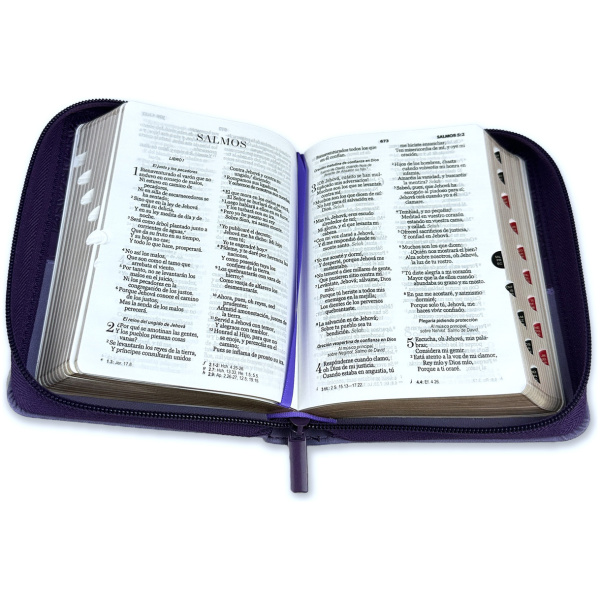 Sé el primero en valorar “Biblia RVR1960 Bifloral lila lila im piel cierre índice bolsillo 8.5P”