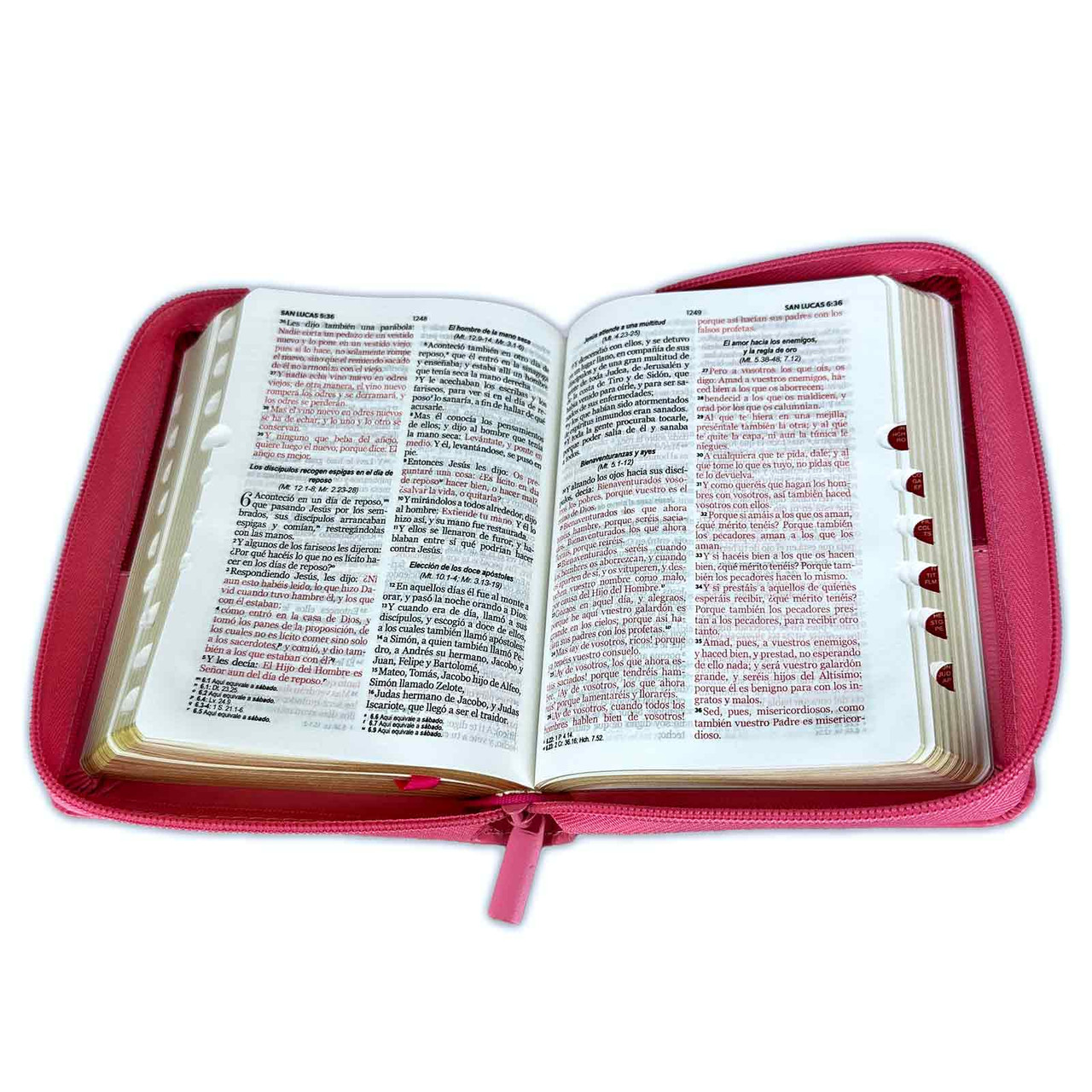 Biblia RVR1960 Bifloral rosa rosa im piel cierre índice bolsillo 8.5pt