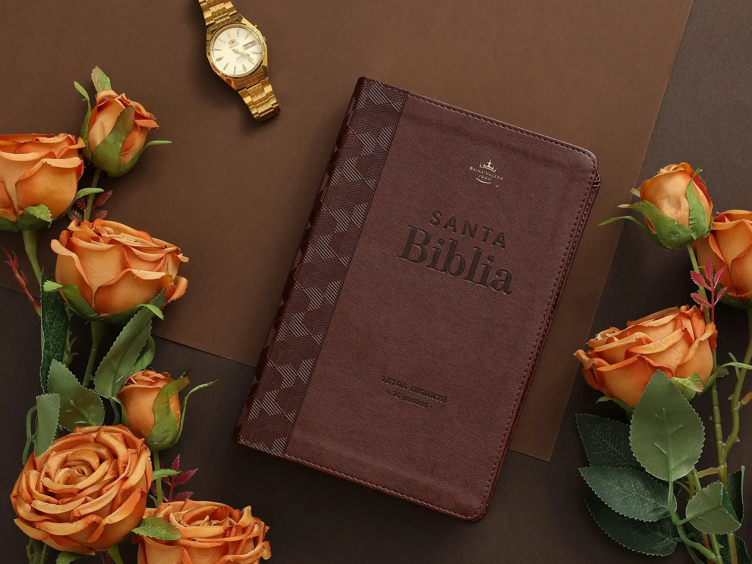 Reina Valera 1960, tamaño manual (138×212 mm), Letra gigante 14 puntos, i/piel, canto dorado, palabras de Jesús en rojo, concordancia , Concordancia de personajes bíblicos. ayudas, referencias cruzadas. 32 páginas a todo color con ayudas y esquemas. 12 mapas a todo color .Letra 14 puntos