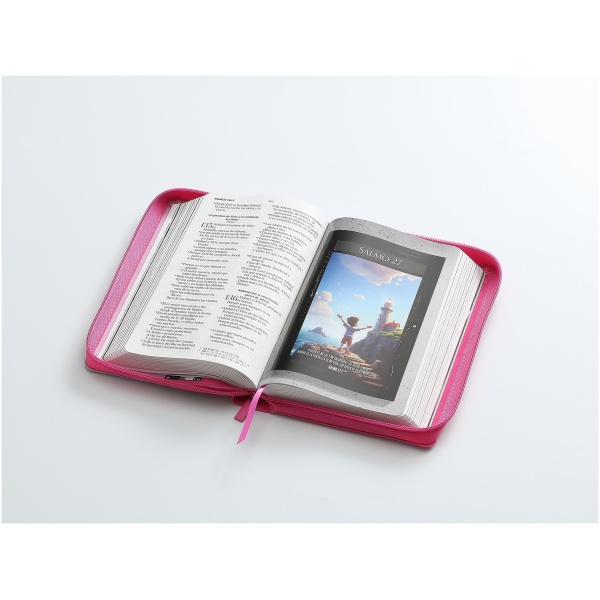 Opinión:”Esta Biblia es preciosa, yo se la compré para mí niña es su primer Biblia y ella ha quedado encantada, es muy práctica, letra grande con diseños muy bonitos y además trae varios apéndices muy buenos.” Inés A.