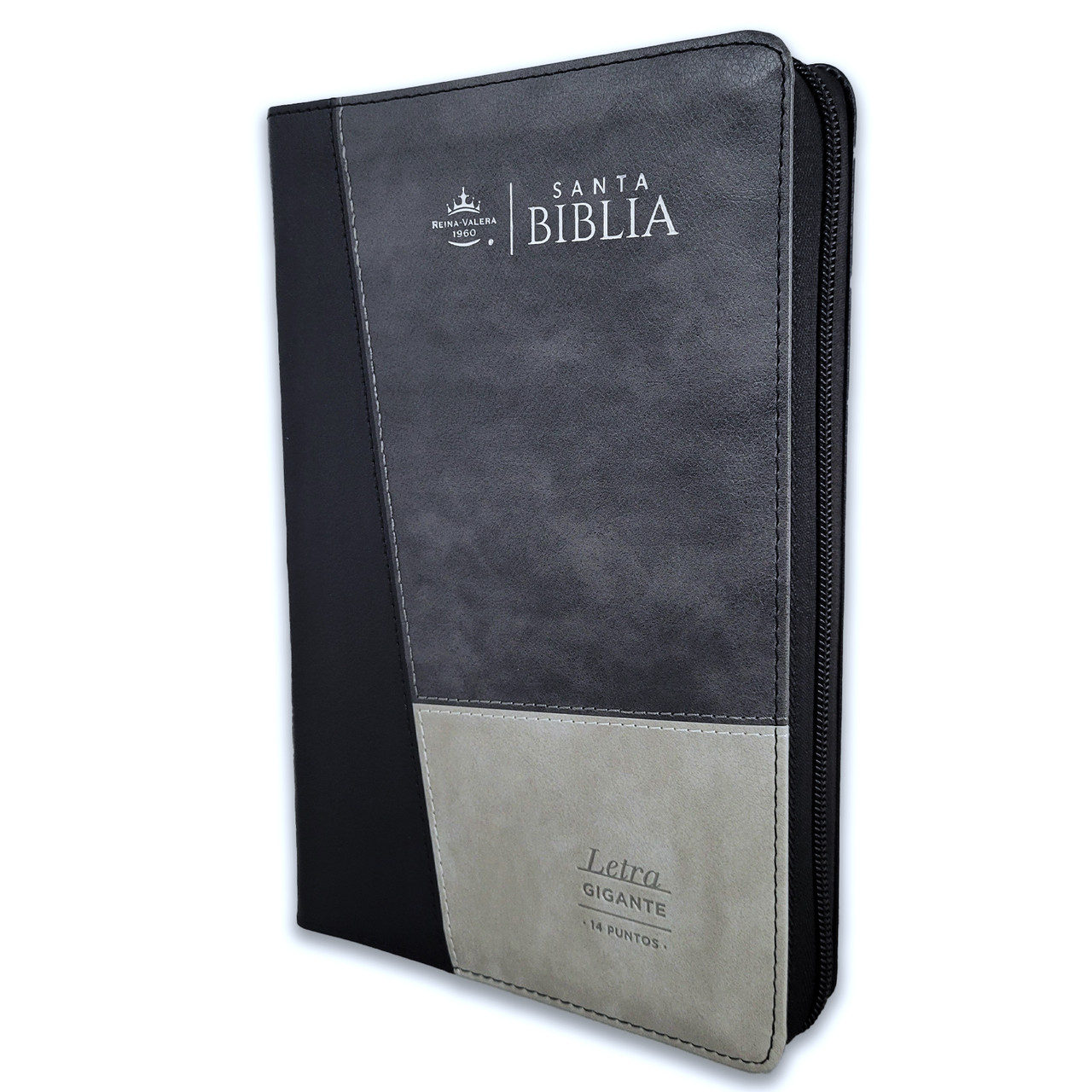 Biblia RVR1960 Iconic negro gris gris im piel cierre índice manual 14pt