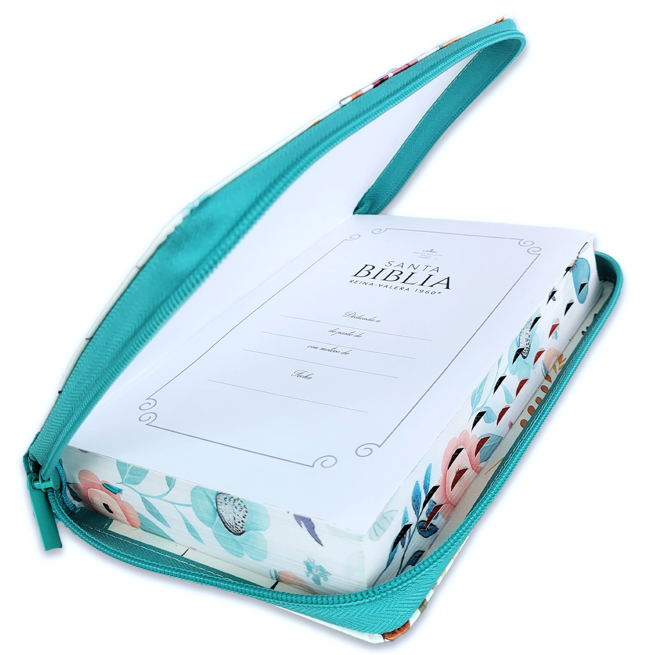 Sé el primero en valorar “Biblia RVR1960 Jardin turqueza cto pintado im piel cierre índice manual 12.5pt”