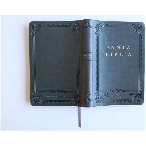 Biblia tamaño manual, ultrafina y con letra grande. Simil piel gris con índice, cinta marcador, y estudio concisa de los nombres de Dios.