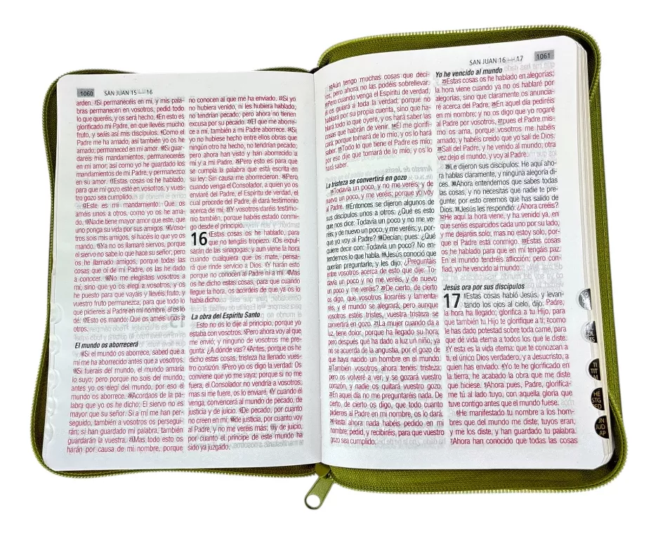 BIBLIA REINA VALERA 1960 LETRA GRANDE DISEÑO CORONA/ COLORES tiene una elegante cubierta en plata o dorado con cierre. Incluye las palabras de Jesús en rojo para una fácil referencia y una concordancia para una mejor comprensión de las Escrituras. Además, cuenta con hermosos diseños para enriquecer tu experiencia de lectura.