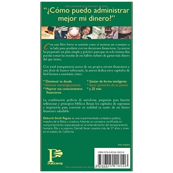 ¡Un plan simple y práctico para tomar las riendas de sus excedidos hábitos de gastos en solo treinta días! Este libro en formato pequeño es como tener un consejero a su lado para ayudarlo con sus decisiones financieras. Los temas expuestos en este libro son de fácil lectura y le enseñaran como disminuir sus deudas, ahorrar con propósito y a planificar sus gastos. La combinación perfecta de anécdotas y principios bíblicos llenan los capítulos de esperanza e inspiración para convertir en realidad su sueño de un futuro financiero saludable.
