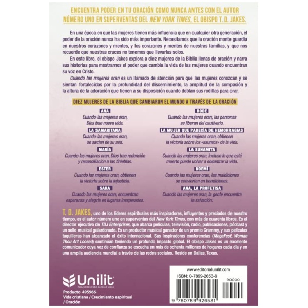 A través de la exploración de las vidas de 10 mujeres bíblicas llenas de oración, el obispo Jakes enfatiza el poder transformador que tienen las mujeres cuando encuentran su identidad, su fuerza, su sanidad y sus voces en Cristo.
