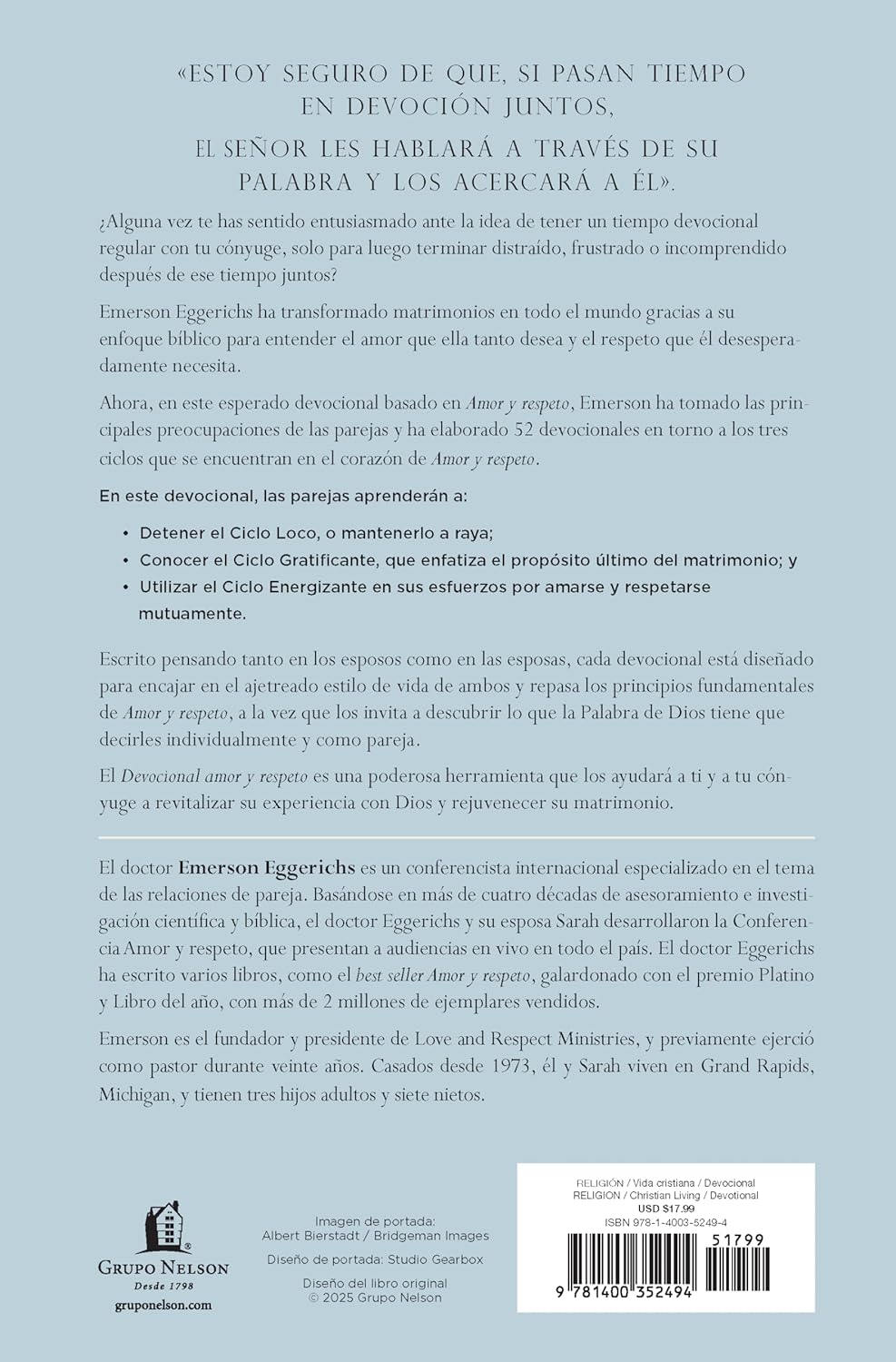 Basado en el best seller Amor y Respeto, con millones de copias vendidas, este devocional semanal ayuda a las parejas a fortalecer su relación al explorar la conexión entre el amor y el respeto. Cada capítulo concluye con una oración y un llamado a la acción para cultivar estos valores en su matrimonio.