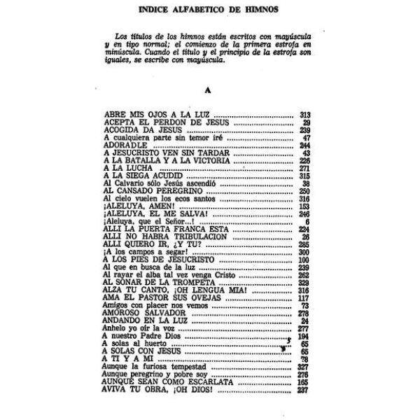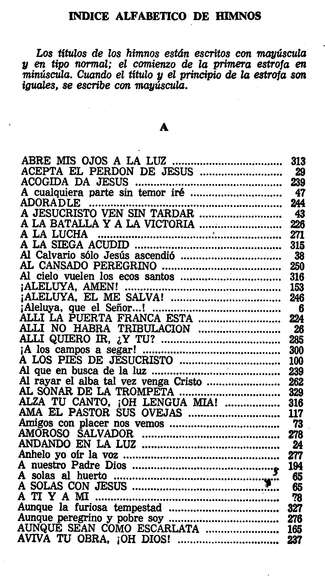 Estos son los himnarios más populares, utilizados por millones de creyentes, por sus himnos tradicionales de alabanza y adoración. Contienen la letra de los himnos sin la música.