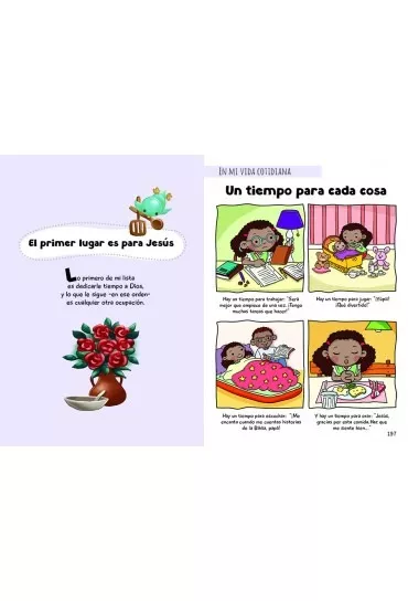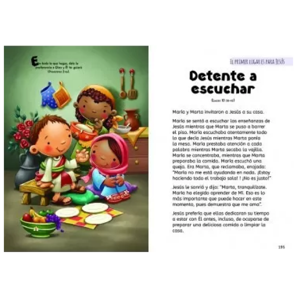 Contiene 60 magníficas historias Bíblicas ilustradas a todo color, además de versículos, poemas, definiciones y relatos de la vida cotidiana que ayudarán a los niños a aplicar las enseñanzas en valores, crece su amor por la palabra de Dios y su comprensión de la misma.