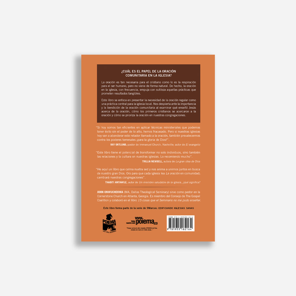Este libro se enfoca en presentar la necesidad de la oración regular como una práctica central para la iglesia local. Nos despierta ante la importancia y la bendición de la oración comunitaria al examinar qué enseñó Jesús acerca de la oración, cómo los primeros cristianos se acercaron a la oración y cómo se prioriza la oración en nuestras congregaciones.