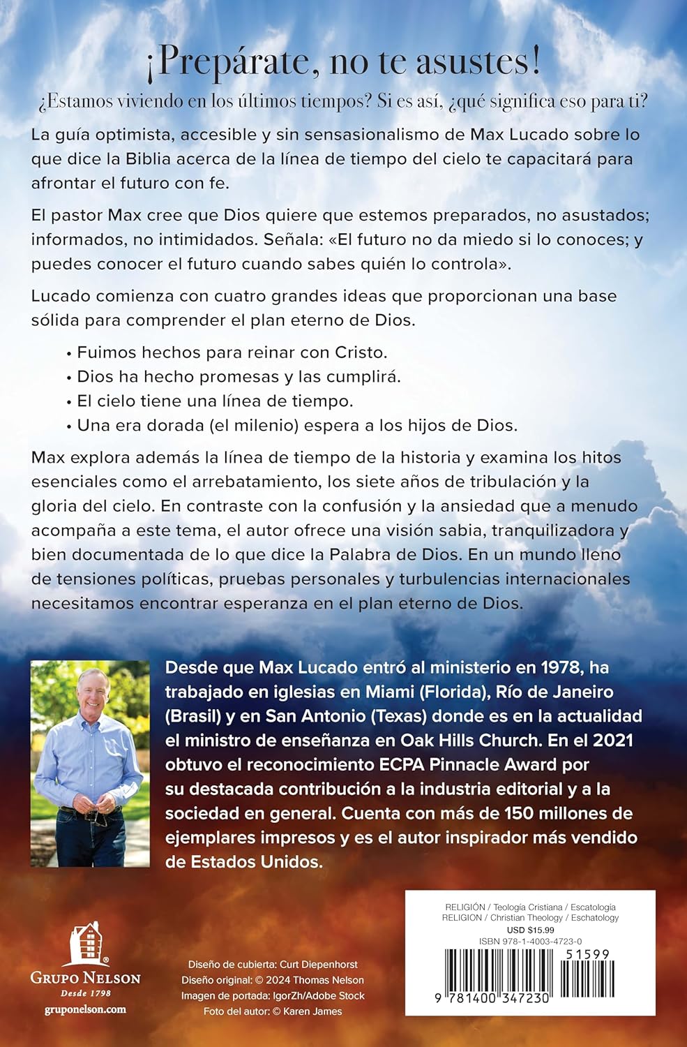 ¿Estamos viviendo el final de los tiempos? Si es así, ¿qué significa eso para mí? La guía optimista, accesible y no sensacionalista de Max Lucado sobre lo que dice la Biblia acerca de la línea temporal del cielo capacitará a los lectores para afrontar el futuro con fe.
