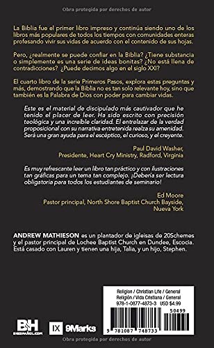 Fue el primer Libro impreso, y sigue siendo uno de los más populares de todos los tiempos. Existen sociedades enteras que profesan vivir sus vidas de acuerdo a sus páginas, pero, ¿realmente se puede confiar en la Biblia? ¿Tiene sustancia o simplemente es una serie de ideas bonitas? ¿No está llena de contradicciones? ¿Puede decirnos algo en el siglo XXI? La serie Primeros Pasos de 9Marks, explora estas y otras preguntas y demuestra que la Biblia no es tan solo relevante hoy, sino que también es la Palabra de Dios con poder para cambiar vidas.
